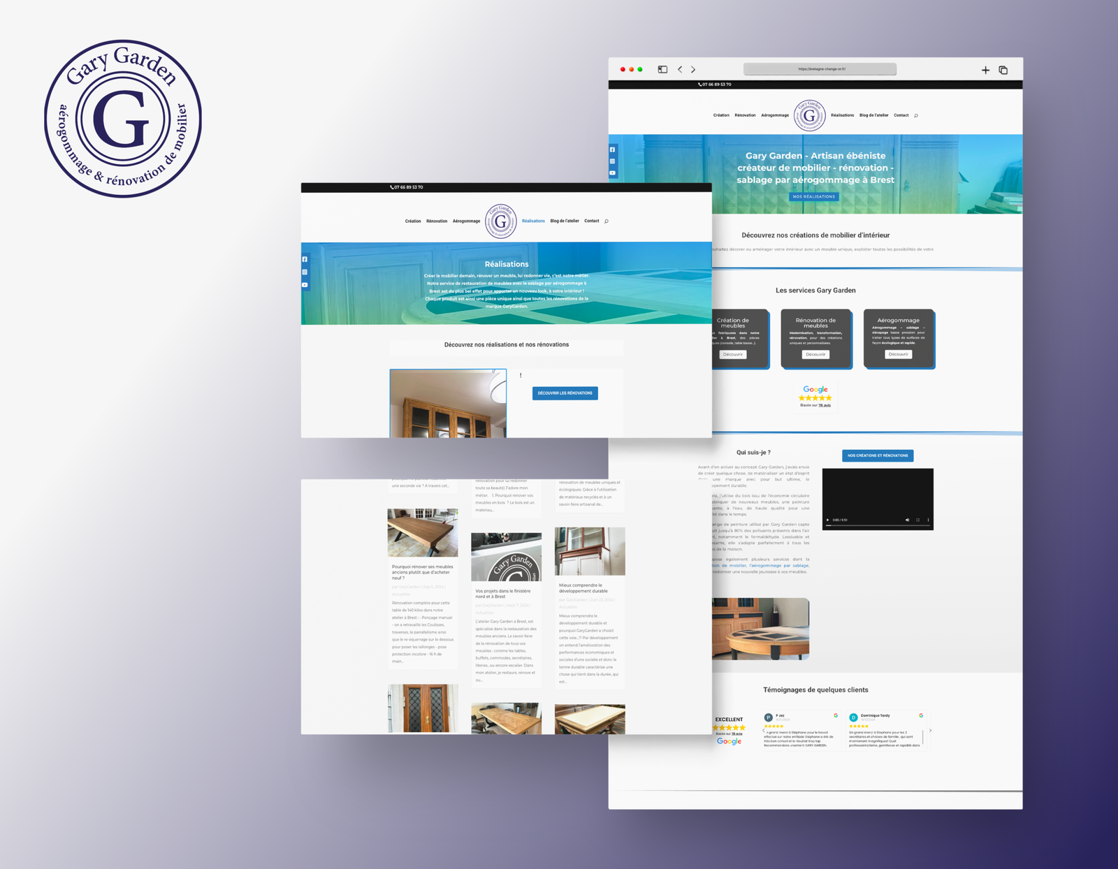 Stéphane a créé Gary Garden, entreprise spécialisée en rénovation de mobilier et aérogommage sur Brest et alentours. Nous avons tout de suite apprécié les valeurs qu’il met en avant : respect de l’environnement, développement durable et ancrage local… Il nous a fait confiance pour la refonte de son site internet et pour la mise à jour de son logo.