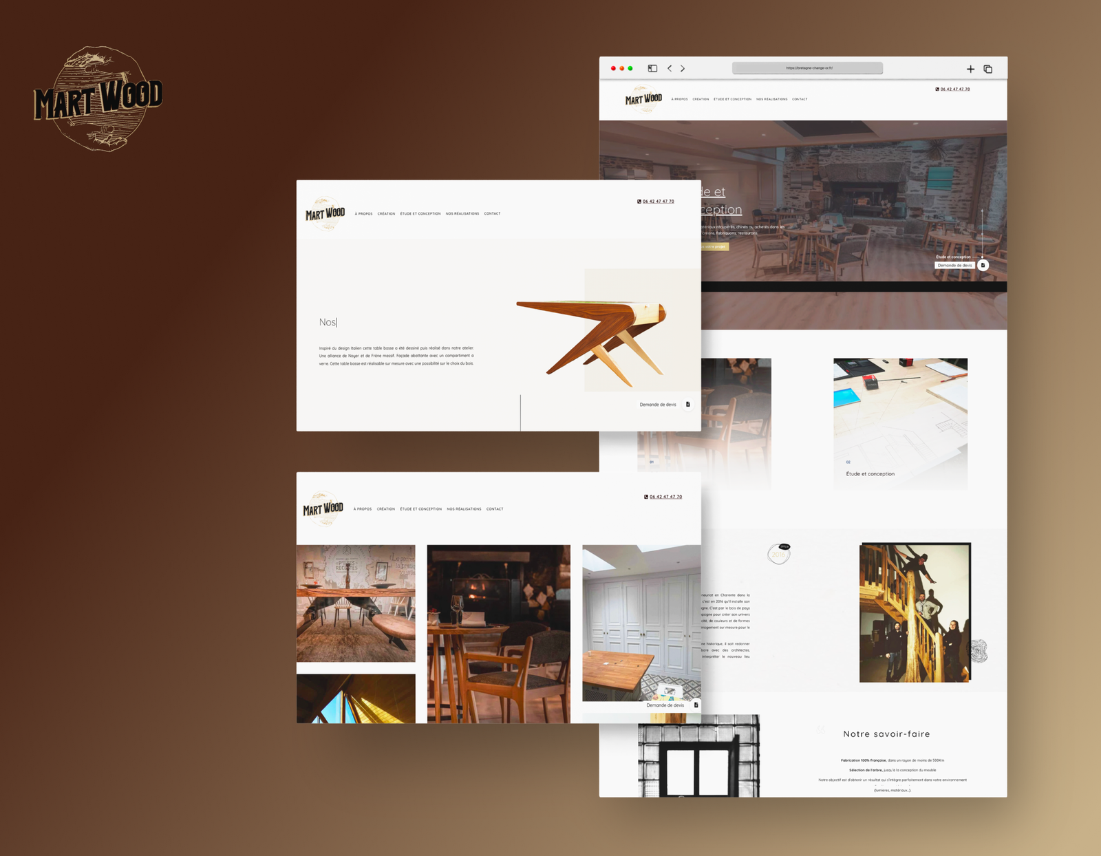 Notre agence web à Brest a été chargée de concevoir une maquette graphique sur-mesure afin de mettre en valeur les magnifiques créations de l’entreprise Mart Wood.